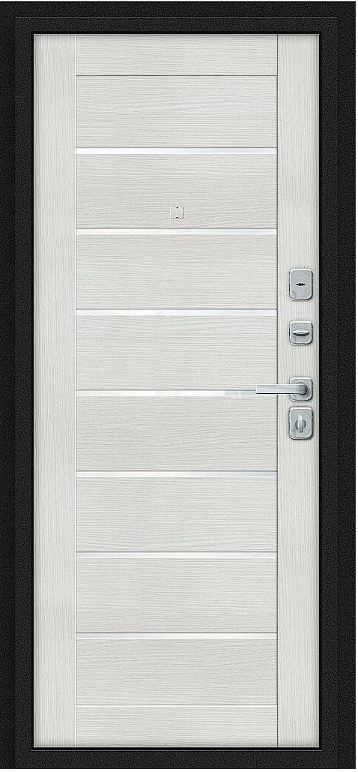 Дверь Браво Техно/BChrome Букле черное/Bianco Melinga - недорогая эконом класса по цене 7 160 руб., отлично подходит для временной установки в квартиру под сдачу, строительство, ремонт. Не смотря стоимость, модель хорошего качества.